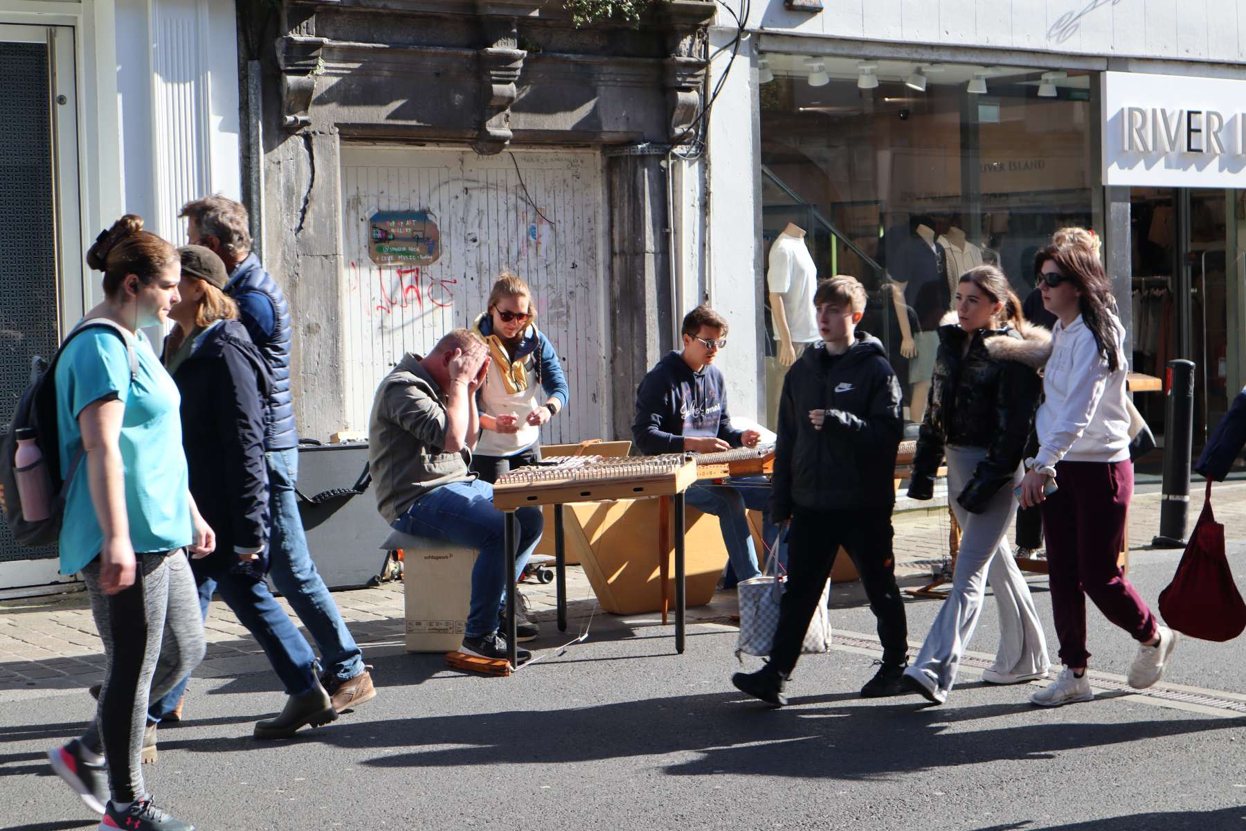 Sitting down to street to enjoy the fresh air and listen to music could be a silient momments but peacful.