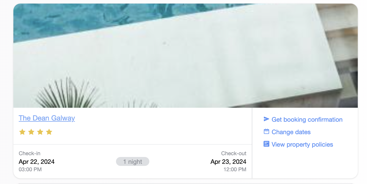There are many hotels in Galway, but i would highly recommend to find the hotel around the city which is convenient to walk around. My first night was booked in the Dean Hotel with price is 139 Euro. The room is beautiful. They also have gym, swimming pool, rooftop restaurant and bar.